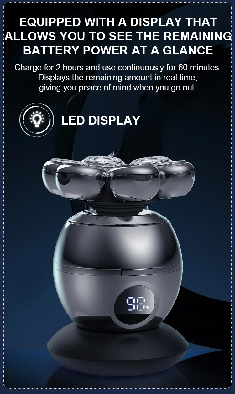● LED display shows battery life and maintenance alerts, making it easy to keep your shaver in top condition for daily grooming.